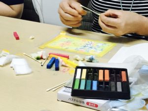 自宅近くで簡単に手にはいる材料だけで行うことも3色パステルアートの特徴のひとつ。