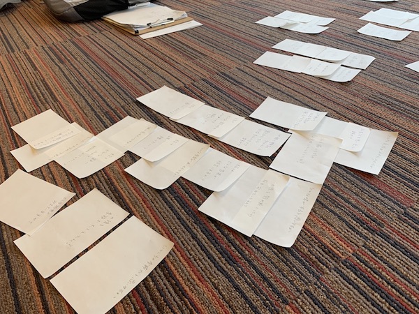 3つのコツを学んだあとは、そのコツに従ってみんなで3色パステルアートの現場における有効な『問い』についてアイディアを出し合いました。