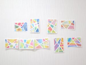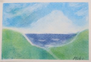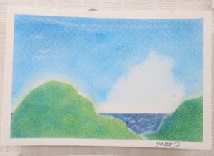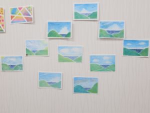 「〇〇の海・山を描きました。」と、それぞれ馴染みのある海や山の風景を思い出しながら描いたようです。