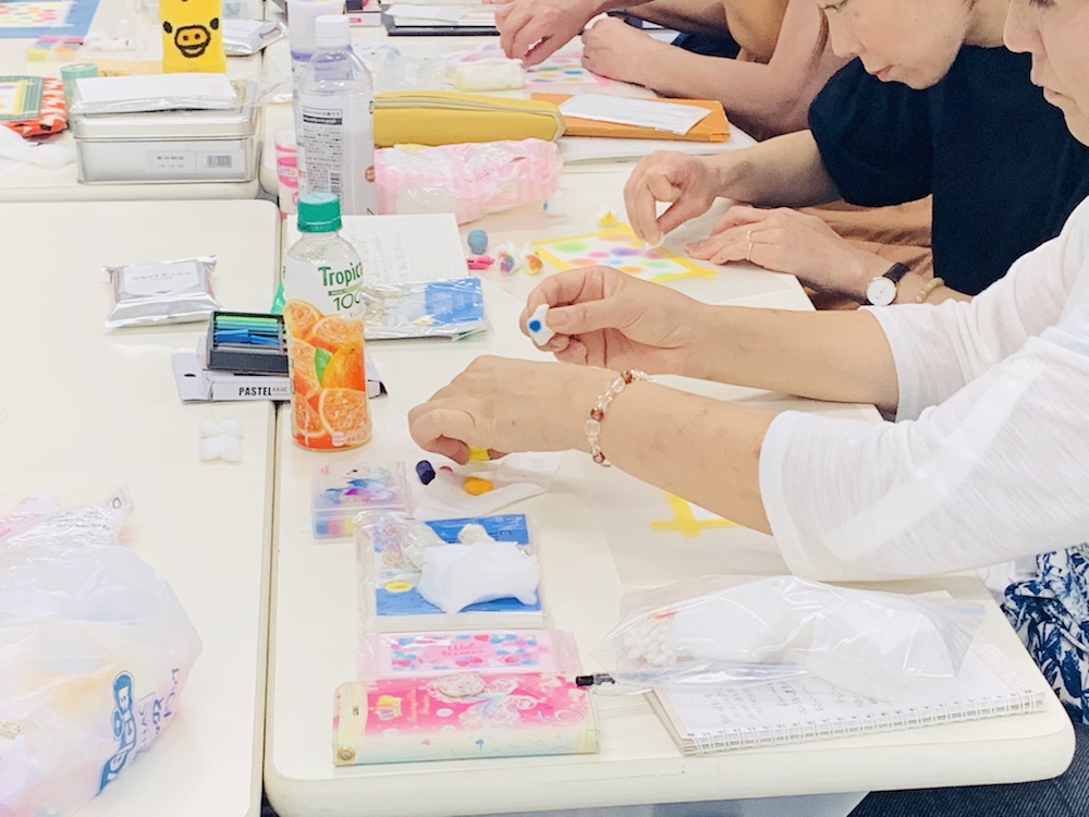 3色パステルアートでは月に1度、インストラクターとしてのステップアップと、活動の情報交換のための交流会&研修会を開いています。