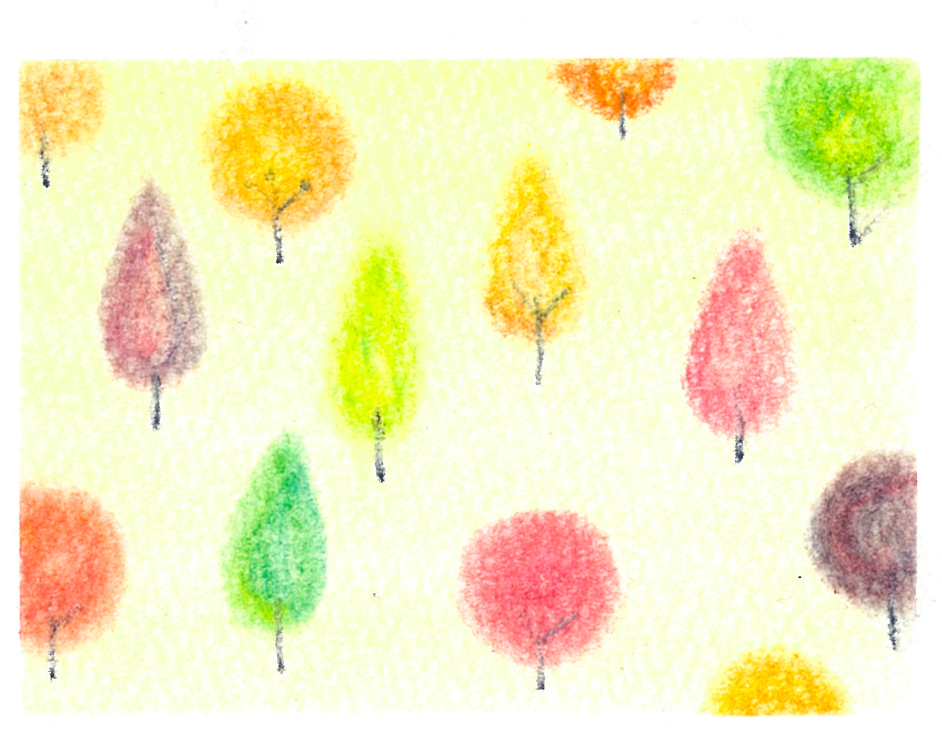 『ぐるぐる色の森』は3色パステルアートの絵のレシピの中でも、特に自由度の高い作品です。