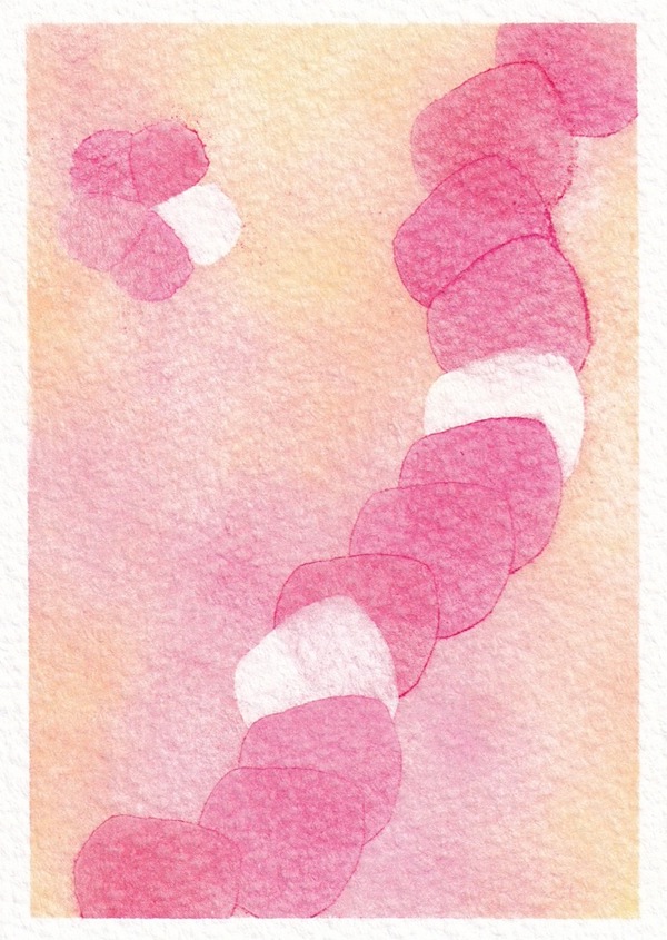 ↑こちらの二作品は桜をモチーフにしたもの。『花びらの抽象画』です。これからの季節にぴったりですね。どちらもハガキの半分のサイズで描かれたミニバージョンです。