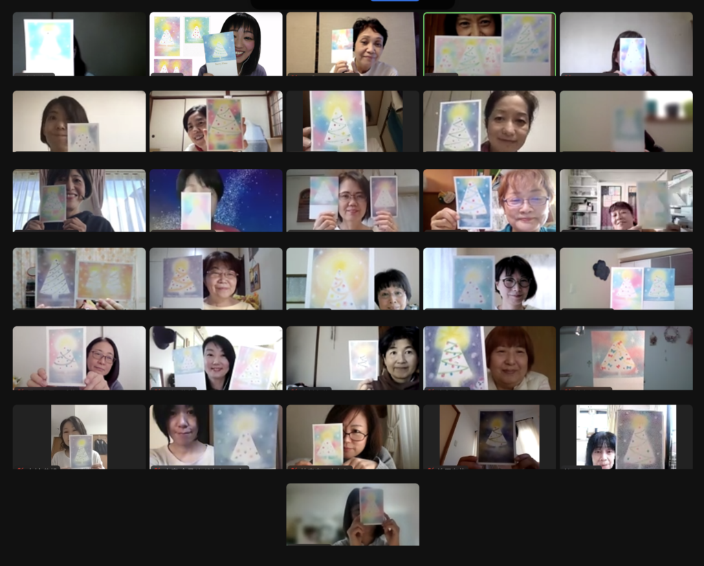 3色パステルアートでは月に1度、インストラクターとしてのステップアップと、活動の情報交換のための交流会&研修会を開いています。今月もオンライン開催で全国のインストラクターとつながることができました。
