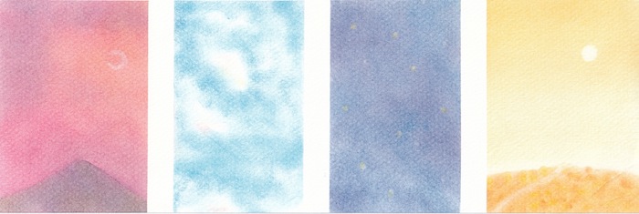 朝焼けの空、気持ちよく晴れた日の空、夕焼け空、夜の空、ゲリラ豪雨の空、空想上の空…