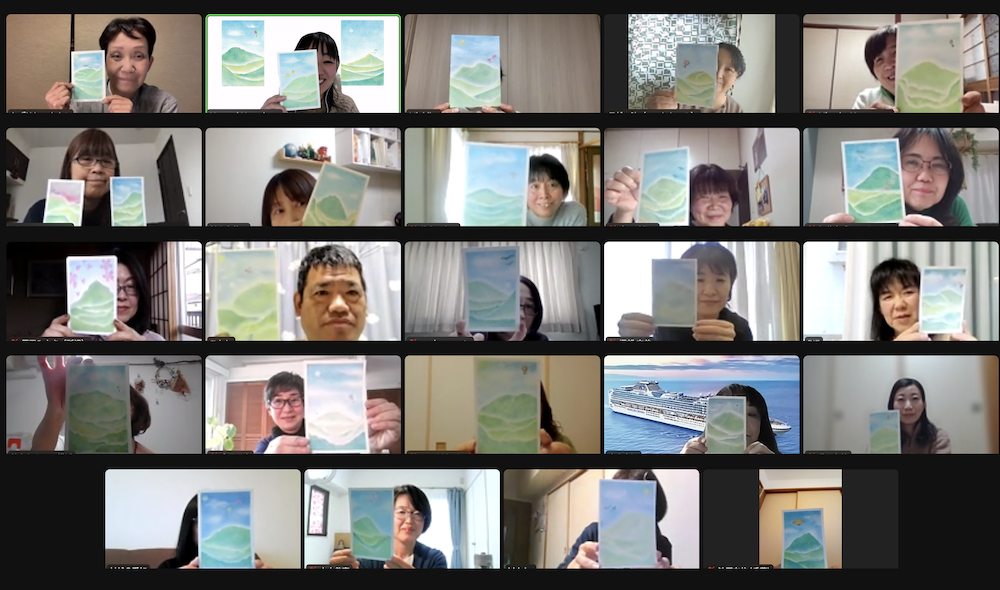 3色パステルアートでは月に1度、インストラクターとしてのステップアップと、活動の情報交換のための交流会&研修会を開いています。今月もオンライン開催で全国のインストラクターとつながることができました。