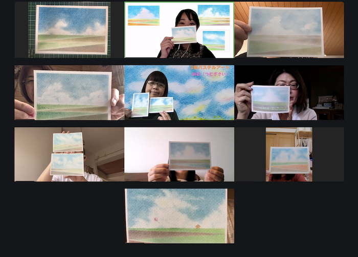 3色パステルアートのワークショップを、ご近所のカフェで開催、小学校の放課後クラブで開催、お勤め先の施設で開催…などなど、多方面に活用している様子が聞かれました。