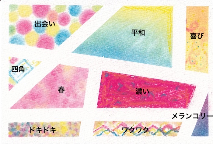 春→喜び→ワクワク→平和→ドキドキ→出会い→メランコリー→四角→濃い