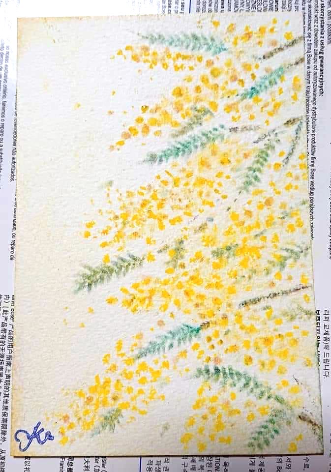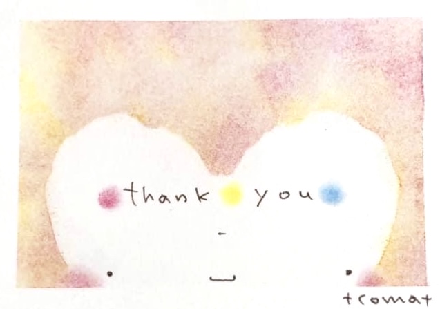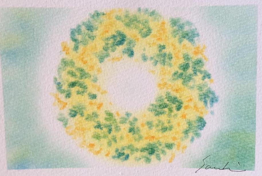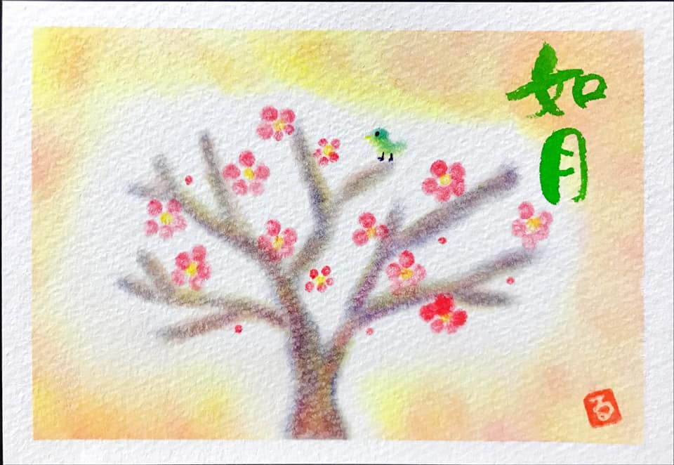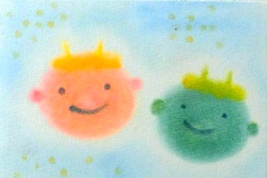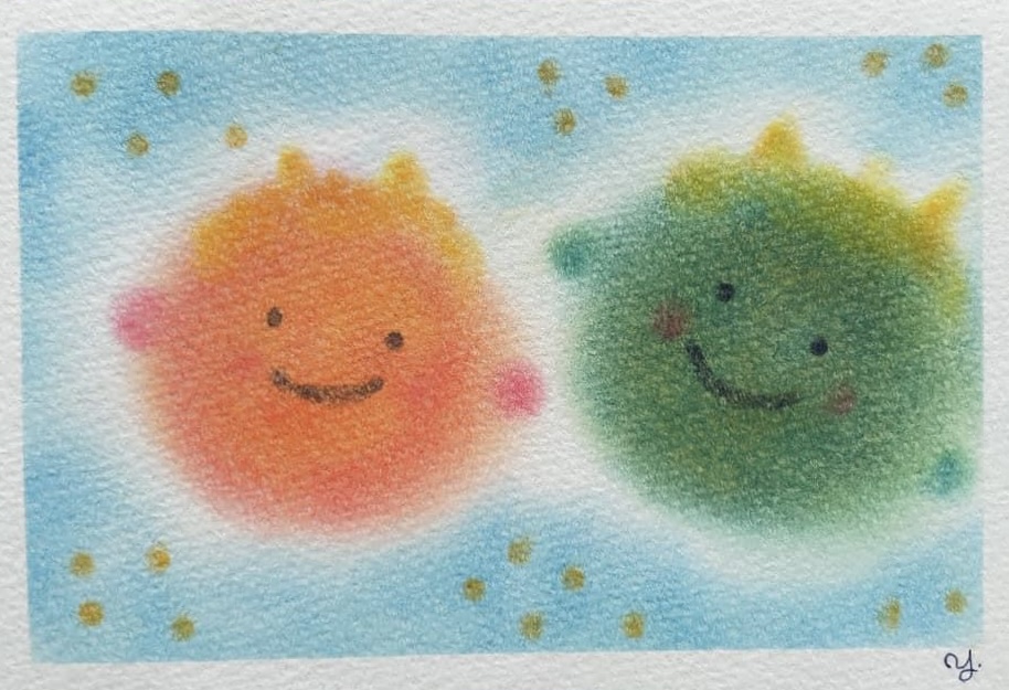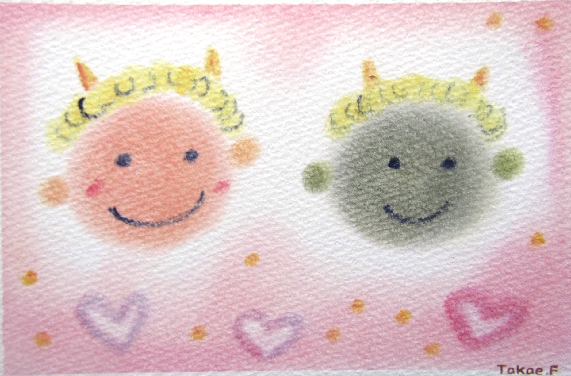 ↑節分にぴったりの『鬼』。こんな鬼なら怖くないかも。。周りの黄色いドットはお豆のイメージ。年の数だけ描いています。