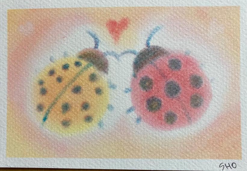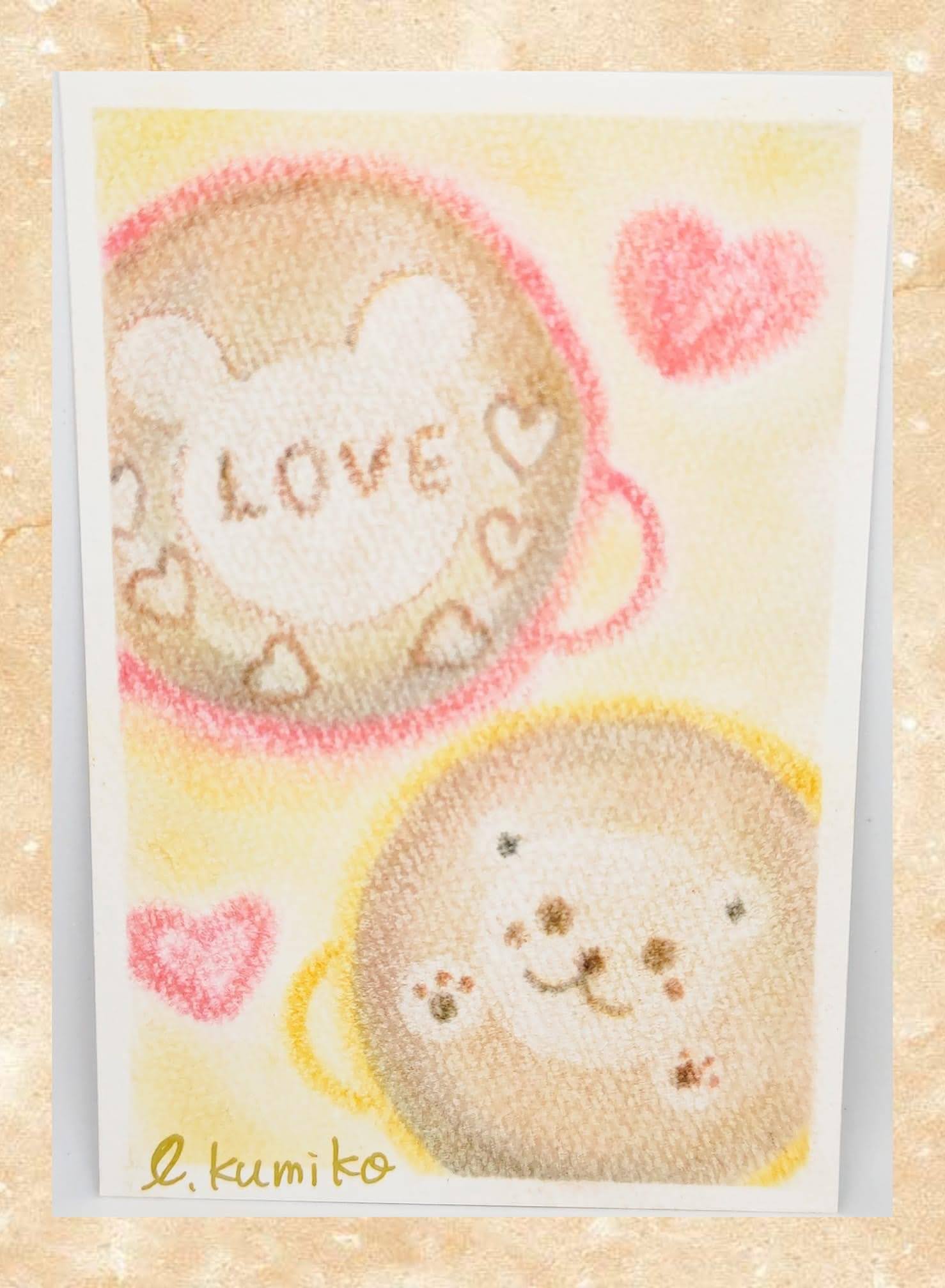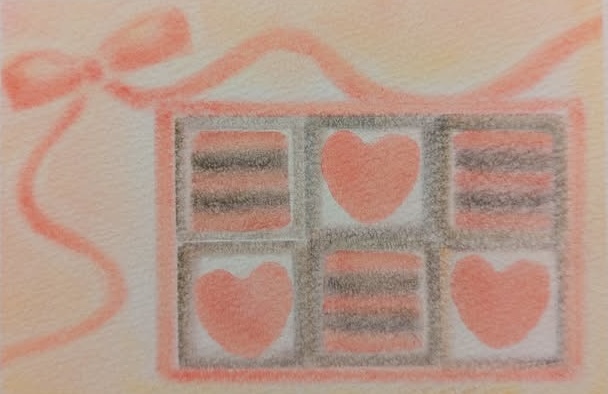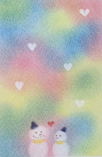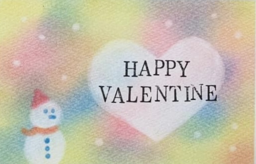 ↑バレンタインをイメージした作品。パステルアートの優しい風合いはプレゼントに添えるメッセージカードとしてもおすすめ。