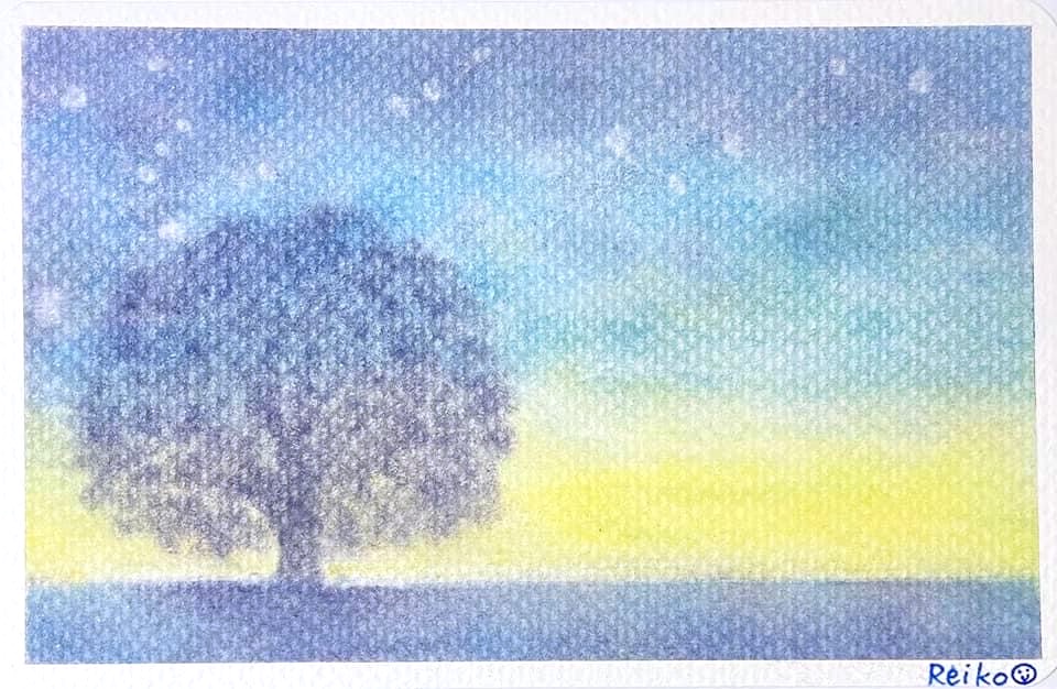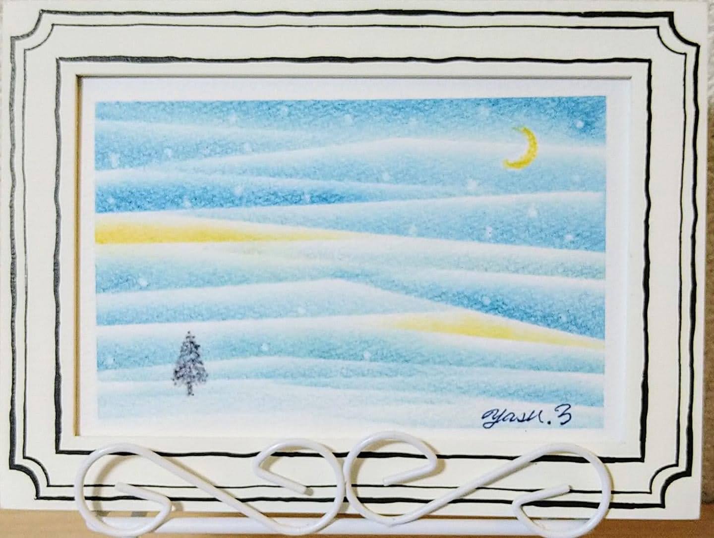 ↑葉も落ち、冬の寒さに耐える凛とした樹を描いた作品。画用紙に日付を印刷してオリジナルの卓上カレンダーに。