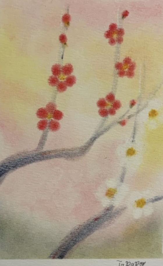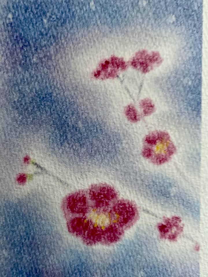 ↑2月をイメージして描いた『冬の花』。冷たい美しさが目をひく絵です。