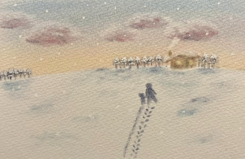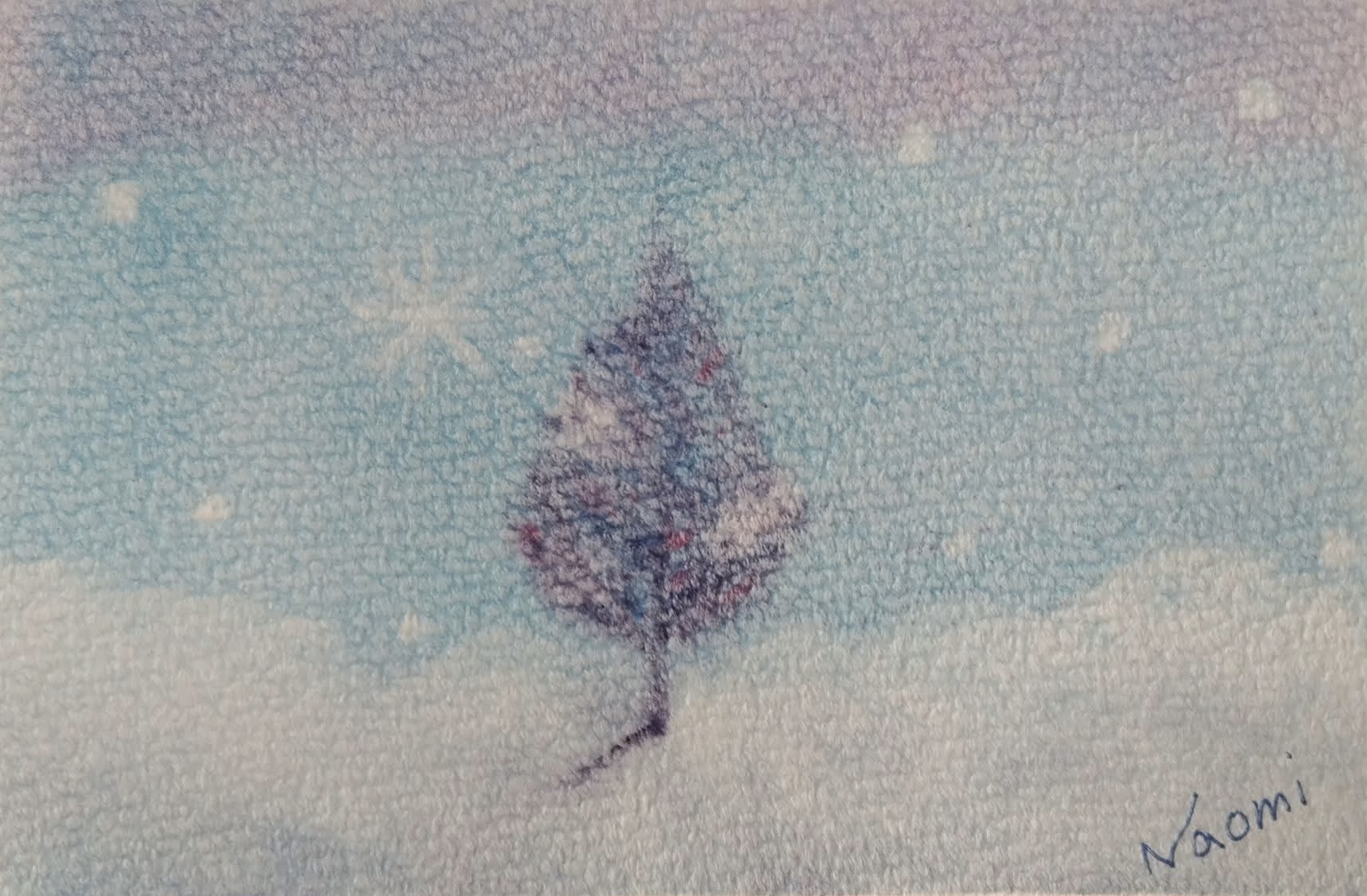 ↑こちらも真冬の雪に耐える木を描いた作品。少しだけ春の兆しが・・・