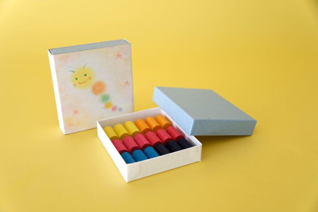 創業100年・日本で唯一のソフトパステル専門メーカーである「王冠化学工業所」様にて、一本一本心をこめて手作りされたパステルです。