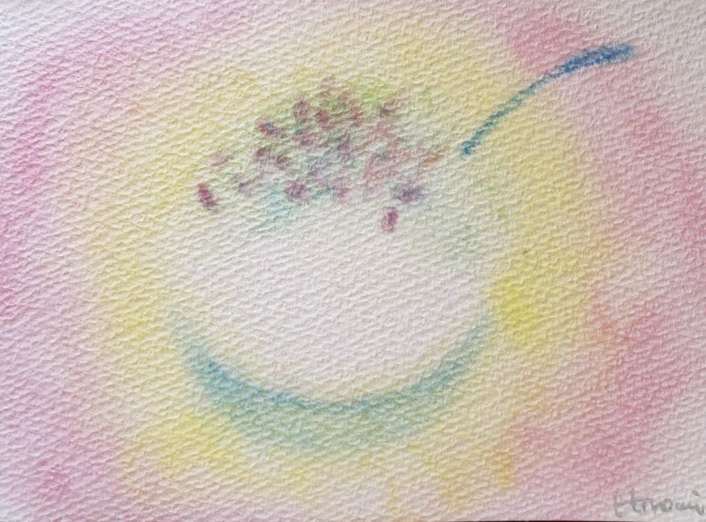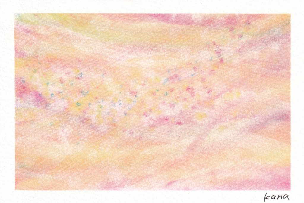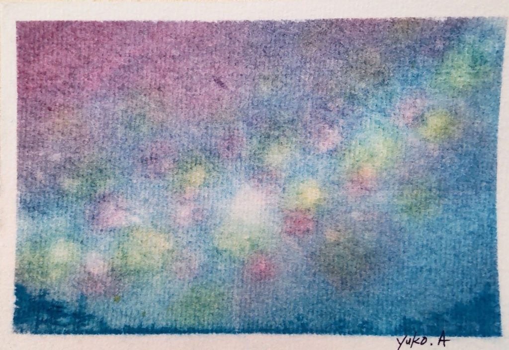 画用紙の上で自然に色が混ざり合うソフトパステルなら、無心でぐるぐる円を描いているうちにまるで宇宙のような深みのある色合いができあがります。