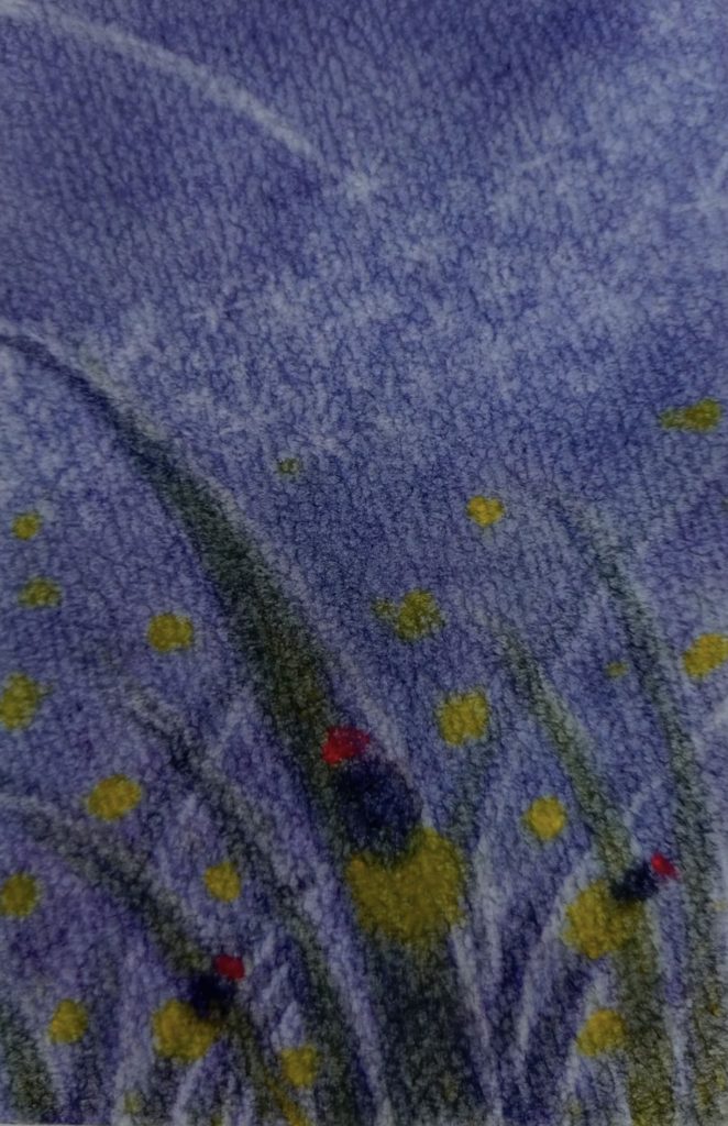 同じ花火でもこちらは線香花火。暗闇が一瞬だけパッと明るくなる瞬間を描いた夏らしい1枚です。