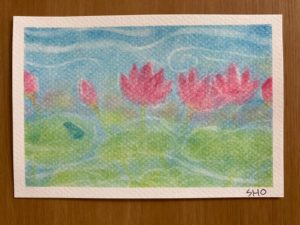 水たまりも3色で表現することで深みのある色合いに仕上がります。見落としがちなささやかな出来事に目を向けながら…