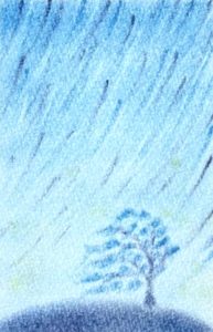 こちらはちょっと大人な雨の風景。雨の中静かに佇む木。