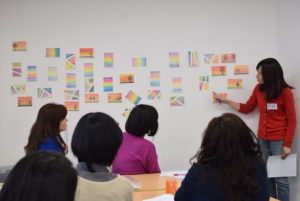 ・3色だけでどれだけ色遣いができるのか?講義を受けて納得することが出来ました。今日習ったことを実際にWS(ワークショップ)で教えることが出来るか?練習しなければ…と思っています。