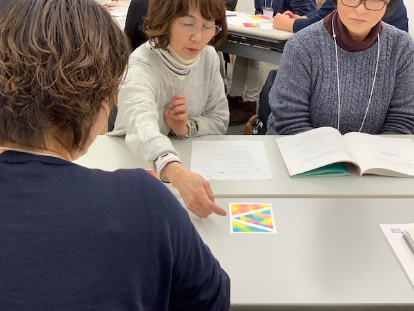 座学はとても分かりやすく楽しく学べました。皆さんの作品を見て同じ3色だけでこんなにも違いがあるのか!と驚きました。
