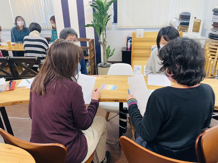 「直接絵を見たい!」とはるばる新潟や茨城からお越しくださった方、もともとアートセラピーを勉強しているという方、ご自身の趣味にプラスしたいという方、女性ばかり8名集まっての賑やかな回となりました。
